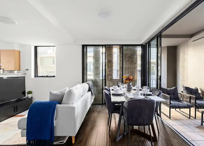 Opera van Sydney ligt op 2 km verderop, en het Museum van Sydney is op 25 minuten wandelafstand van het appartement van 122 m² te vinden. Het duurt niet lang om het Museum of Contemporary Art Sydney te bereiken, op 2,1 km verderop.